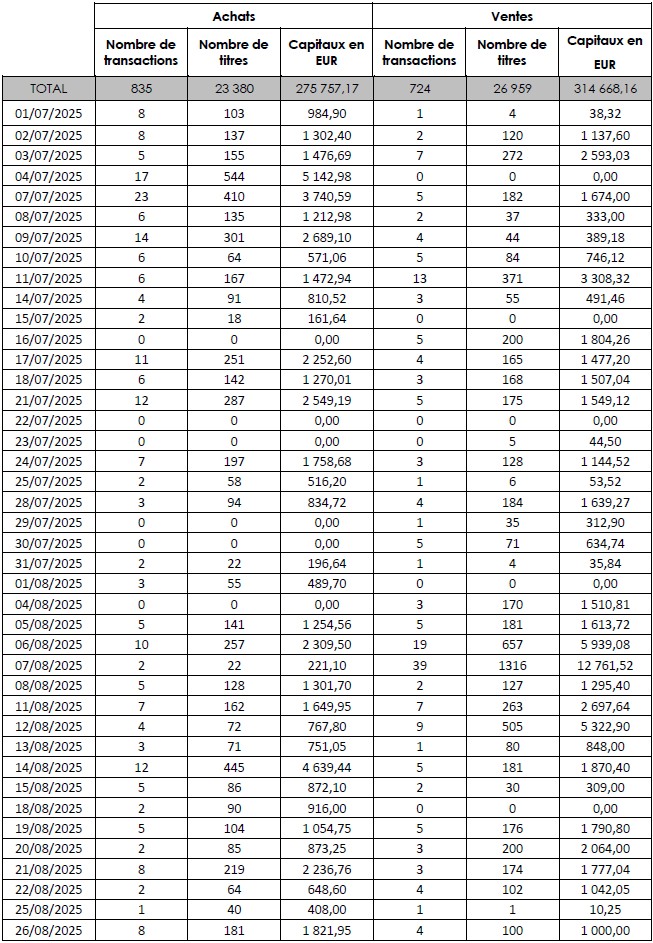 BILAN SEMESTRIEL S2 2025 DU CONTRAT DE LIQUIDITE CONTRACTE AVEC LA SOCIETE DE BOURSE GILBERT DUPONT